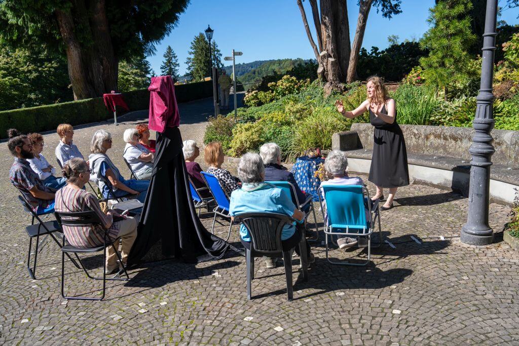 Seit 17 Jahren schon bieten wir Märchenspaziergänge auf und um Schloss Meggenhorn an. Im Viertelstundentakt spazieren die Zuhörenden von einer Erzählinsel zur nächsten und hören sich an zauberhaften Innenplätzen und magischen Aussenplätzen Märchen zu einem besonderen Thema an.